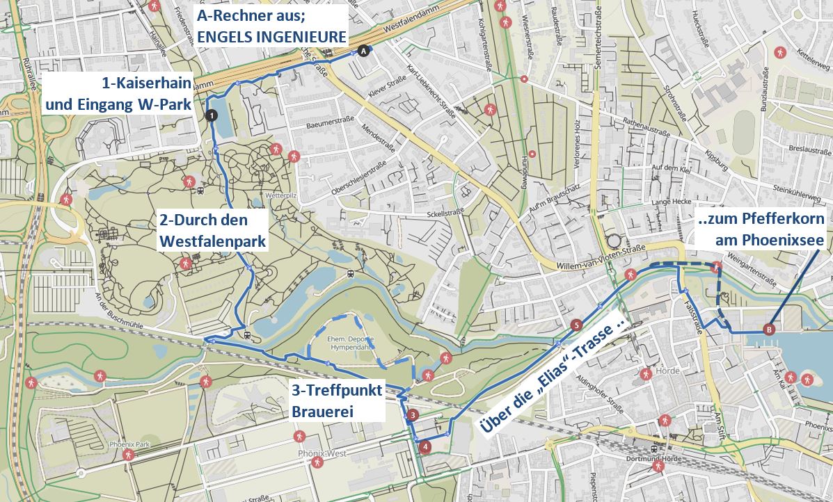 „Das Wandern ist des Engels Lust“ … dachten sich die Mitarbeiterinnen und Mitarbeiter der Engels Ingenieure GmbH und machten sich am 7. Oktober 2021 auf zu einem Spaziergang durch Dortmund Hörde. Vom Büro aus ging es durch den Westfalenpark und entlag der renaturierten Emscher, bei einem Stopp an der Bergmann-Brauerei, zum Phoenix-See. Dort klang der ca. 5 km lange Büroausflug in einem Steakhaus gemütlich aus.