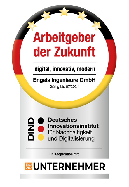 Auch im Folgejahr dürfen wir uns wieder geehrt fühlen: Die Engels Ingenieure GmbH wurde erneut mit der Auszeichnung „Arbeitgeber der Zukunft“ durch das Deutsche Innovationsinstitut für Nachhaltigkeit und Digitalisierung (DIND) bedacht.